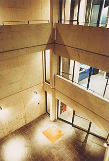 「今に立ち戻り、未来の古典を創ること」として、新しさの中にも古さを感じさせるデザインとした。アプロ−チの石、玄関のガラスドアや中庭などは古代のロ−マ時代の邸宅を参考にデザインした。